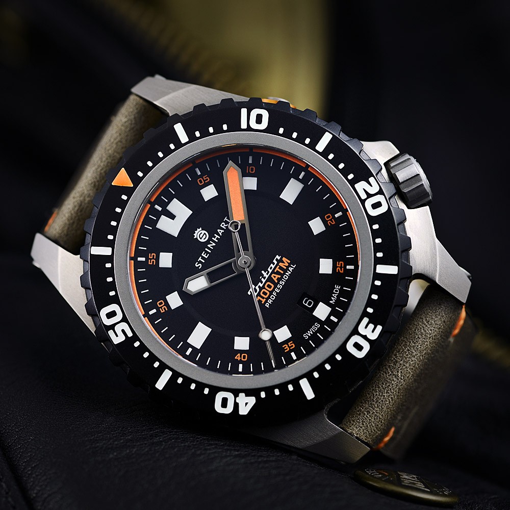Przesyłka przesłana ekspresowo, w ciągu dwóch dni. Zegarek solidny, budzi szacunek. Pasek skórzany vintage szeroki 24 mm dość sztywny ale ładnie się prezentuje. Ogólne wrażenie 4+. Tarcza doskonale czytelna, dwa rodzaje lumy wyraźnie widoczne w ciemności. Wyraźny indeks na godz 12 ułatwia orientacje. Bezel lakierowany piano-black, z wyraźnym klikiem. Zamiast teleskopów zakręcane piny. Dekiel metalowy z ładnym grawerem - jak to u Steinharta. Co może być lepiej? Co do zegarka nic, estetyka wysoka. Mechanizm znany i ceniony ETA, tarcza czytelna bez natłoku. Można dodać najwyżej dodatkowe piny (jakby kto zgubił) ewentualnie opcja wyboru paska skórzanego lub kauczukowego. Zdecydowanie udany zakup. Jakość vs cena na korzyść jakości.